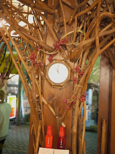 入り口に流木を打ちつけたり…。(時計は恩師dhk会長からお祝いに頂戴した物)
