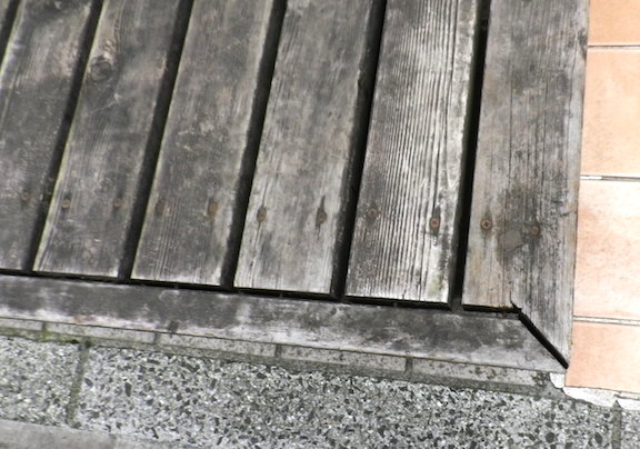 1番前の木のつなぎ目に空間が空いてしまい、剥がれ落ちそうになってす。