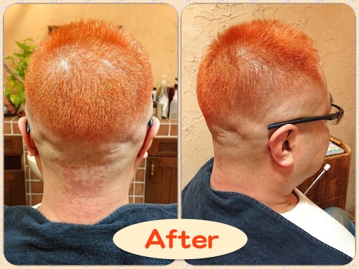 そして回りをスキンフェードからの〜坊主風ラウンドフォルムのベリーショート。