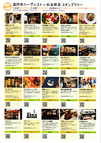 スタンプ5店舗で500円引き / 10店舗で1000円引き / 全部集めたら杉並ギフトカード4000円分のプレゼント