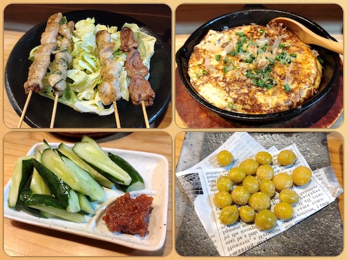 で、この辺りでお腹がいっぱいになってきて…酒のつまみにと「梅きゅうり」と「揚げぎんなん」を注文。
