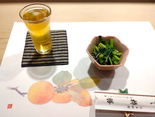 お刺身(コチ・カンパチ・カマス)・白子ポン酢・ホウレン草ゴマ和え…そして日本酒。