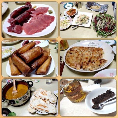 マグロ・カツオ・悦ちゃん特製のコールスロー・春巻き・餃子…そしてNクサ作のシーフードカレー。