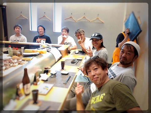 美浜寿しさんのカウンター8席は、Monday Surf Network仲間で貸切(笑)
