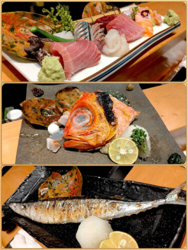 刺盛り、焼きキンメ、サンマ塩焼き