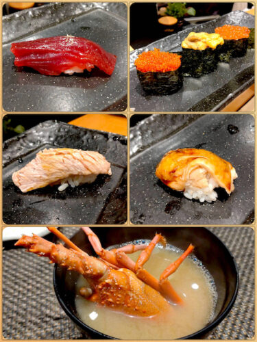 〆はマグロ漬け、軍艦3つ、炙りトロカマ、穴子、味噌汁〜♡