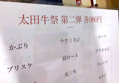 なんとこの日、大田牛祭りというのをやっていて、各部位¥980でいただけるイベント!