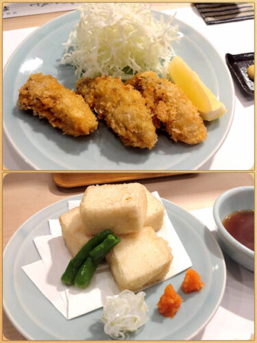 ホックホクの牡蠣フライ、揚げだし豆腐♬