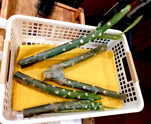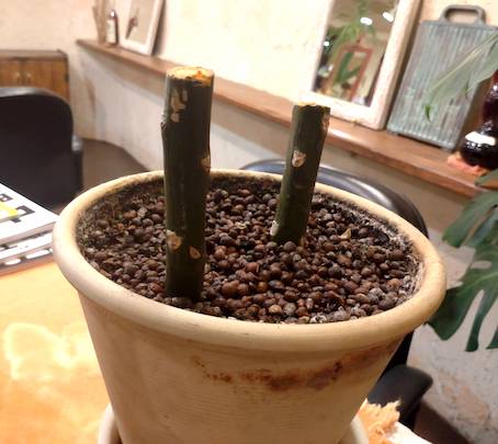 2週間ほどまえに剪定したプルメリアですが、このように店内でひっそりと佇んでますw