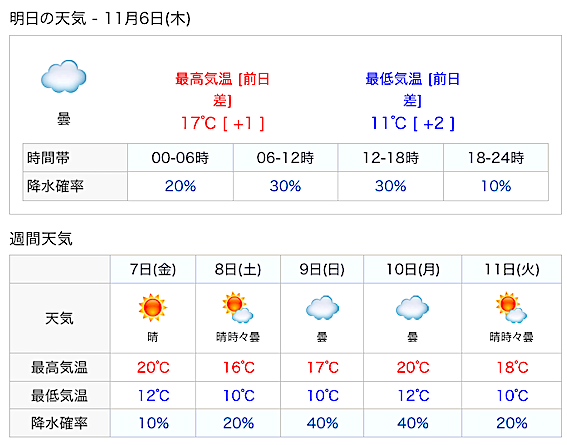 11月に入った途端にびっくりするような気温低下!