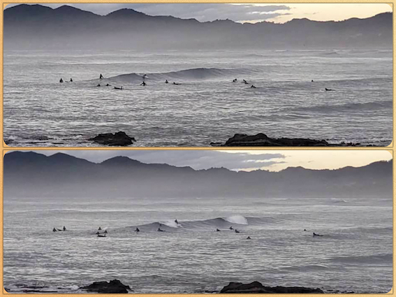 ところが西側は波がまとまっておらず、頭半ほどのパワフル波がバンバン入る (^^;)