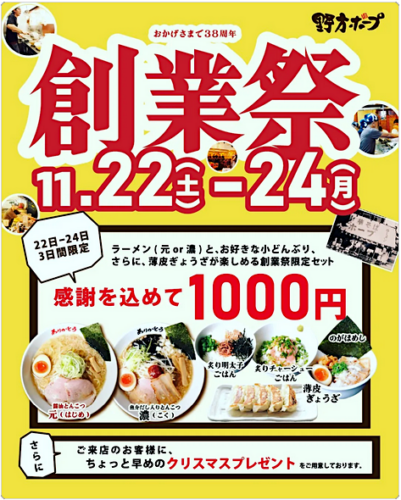僕(シュウ)の大好きな“野方ホープ”さんで今週末に創業祭♬