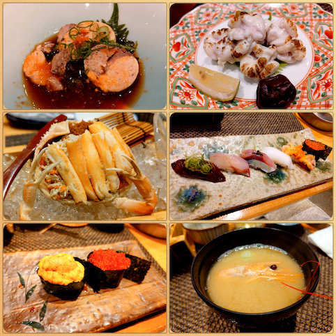 あん肝・白子焼き・せいこ蟹・おまかせ6貫・ウニ とびっこ・味噌汁