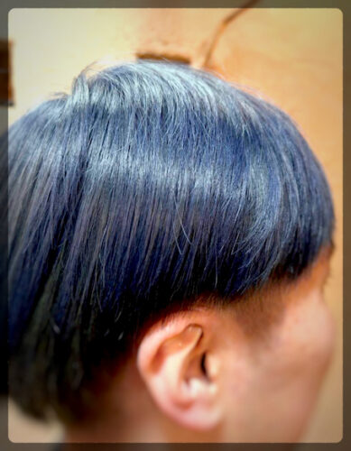 ブルーはブリーチでかなり自毛を明るくしないと入らない色 (^^;)