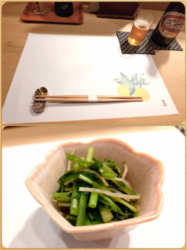 お通しのセリのお浸し…ヤバ〜イ!めちゃ癒されます♡
