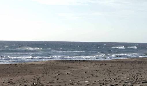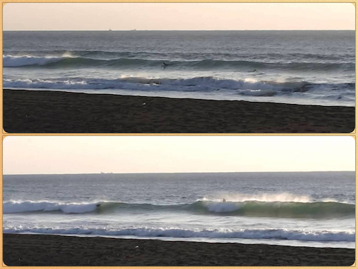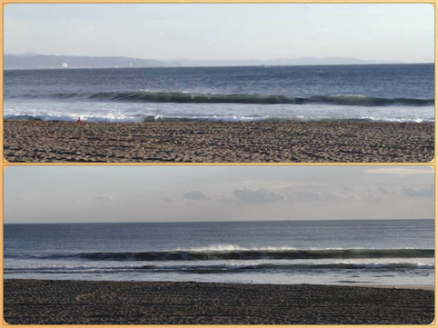 右側のマンション前でかろうじてキレ目ある波が割れているのを確認。