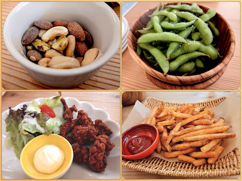 ナッツ・枝豆・タコ唐揚げ・フライドポテト