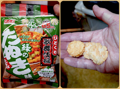 緑のたぬきに合うという、ひとくち歌舞伎揚!w