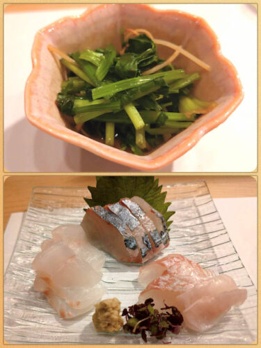 からの〜お刺身!今回は右からヒラメ・シマアジ・松皮カレイ