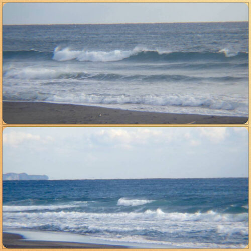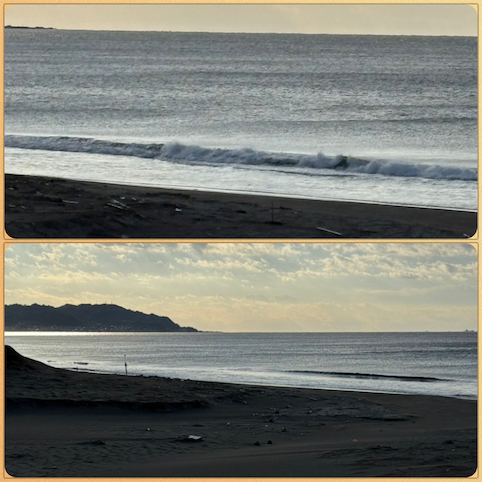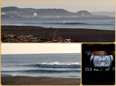 前日の朝とはまるで違う海の景色、そして波のコンディション。