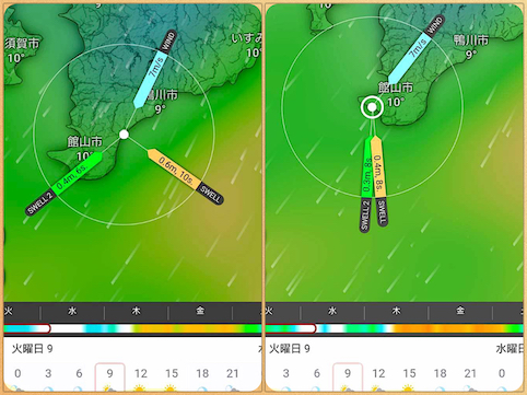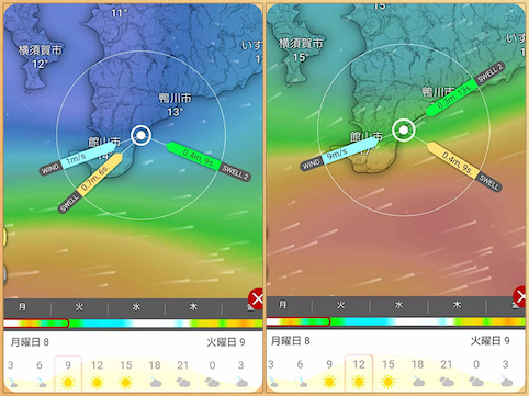 予報では朝の早い時間は無風。けれど10時には南西風が10m以上となる。