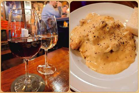グラスワインとカルペペ(カルボナーラ+ペペロンチーノ)