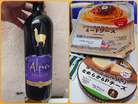 アルパカ赤ワイン(プレミアム)と冷凍ミートソース・カマンベールチーズ!