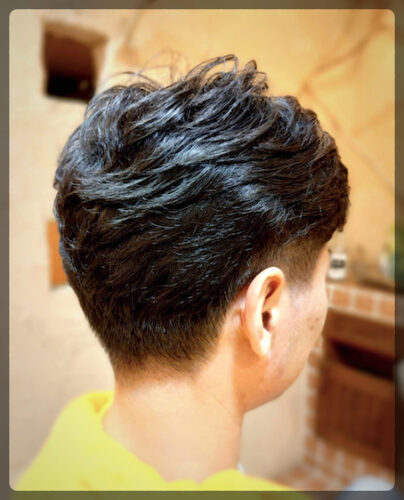 サイドをツーブロックに刈って、襟足もスッキリ刈上げ。
