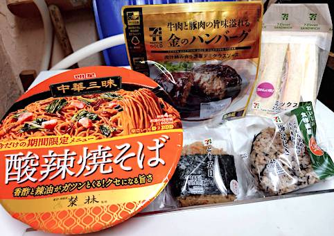 ちなみに昨晩の夕食は、写真にあるサンドイッチ&おにぎり2個。(日持ちしないものから!)