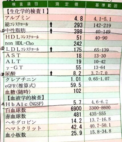 中性脂肪・コレステロール値・尿酸値の数値が良くなっている期待感でいっぱいでした。