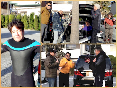 10人ほどの仲間たちがわちゃわちゃ集合し、北風吹いて寒い中ゲットウエット!