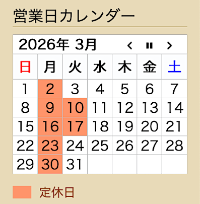 3月はイレギュラー無く、通常通りの定休日となります。