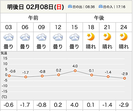 気温はそこまで下がらないものの、昼前から雪が降り出して夜中まで!