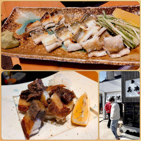 まずはアナゴ白焼きに、サービスで出して頂いたマグロすなずり焼き♡