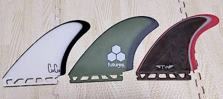 こうして並べると右側のTWフィンが高さがあって大きく見えるが、
