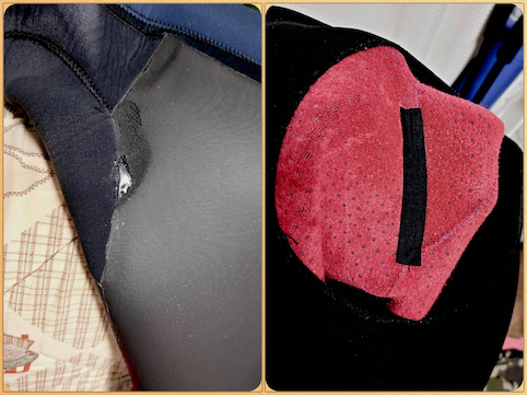 脇部分のゴムが摩擦によってすり減ってしまったので、ゴムボンドで補強。