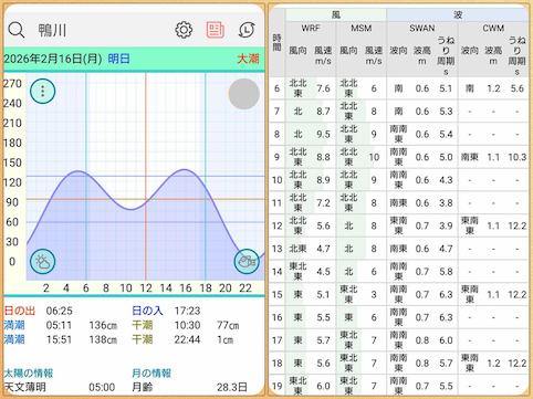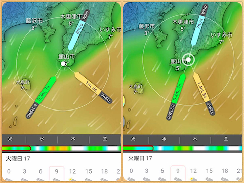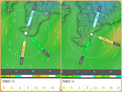 火曜日の予想はこんな感じで、北東風が強く寒〜い日(><)