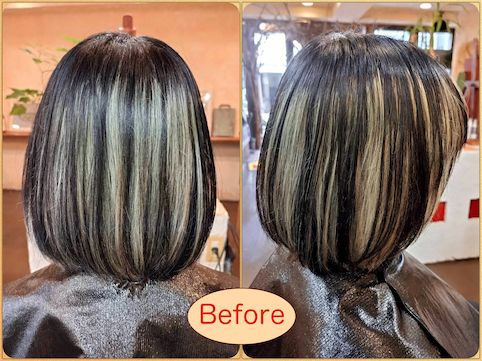 今回のご依頼は、このブリーチのリタッチ(伸びた根元部分のブリーチ)&カラー。