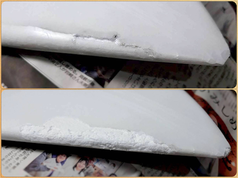 EPSボード製なので、硬い樹脂なハズなのにこの割れ方!