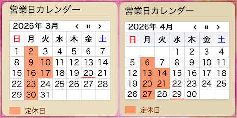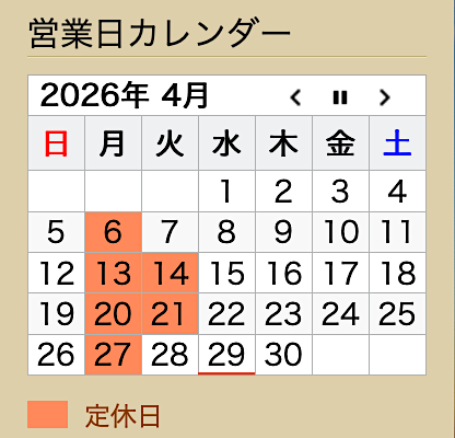 休みとしては3月同様、イレギュラーの無い定休日となります。