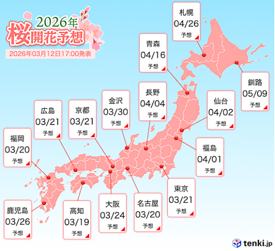 今年は暖かくなるのが早いせいで、桜の開花予想は少し早めになってますね。