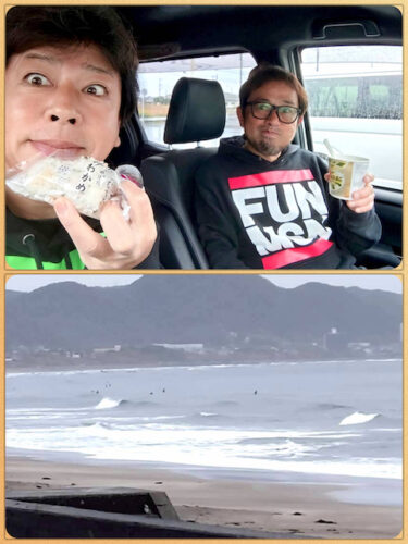 そして波も良くないので、一旦上がってS石KINGとSアツが入っているJ’s前へと浜を歩く。