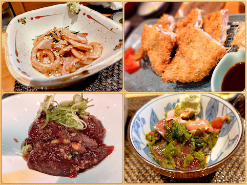 赤貝ヒモ・アジフライに舌鼓を打ち…サービスでマグロ血合い刺・めかぶマグロを頂いた♬